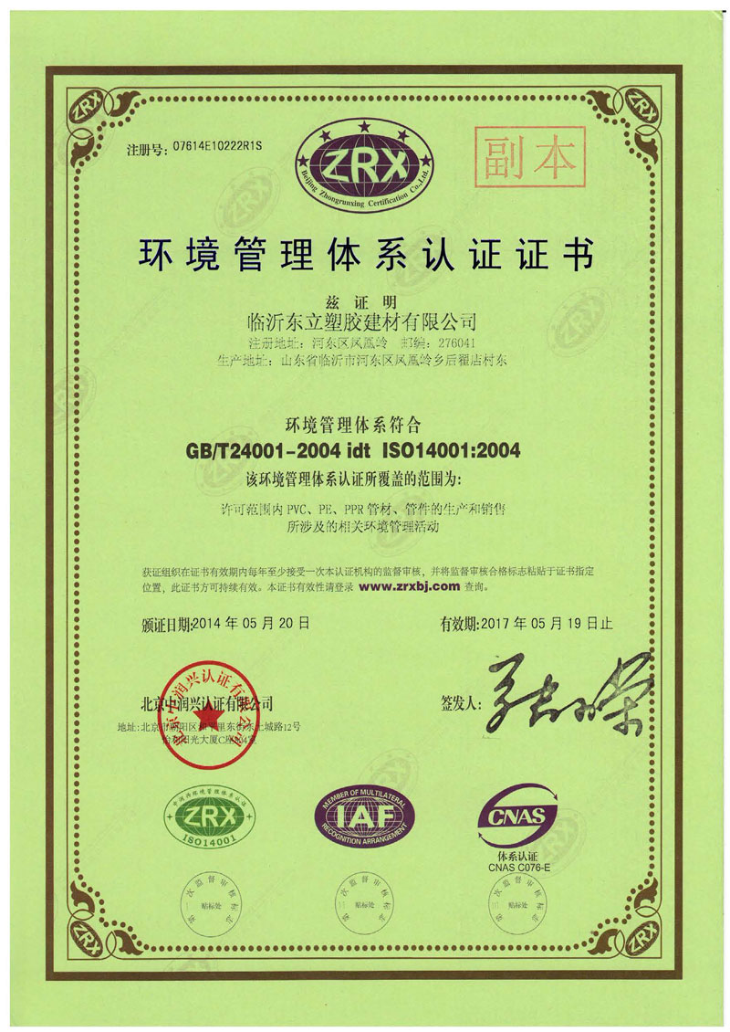 環(huán)境管理體系認(rèn)證證書